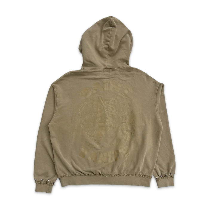 The Saint Vanity Breakaway Zip Up Hoodie (Orange) stands as a bold expression of contemporary street culture, merging powerful symbolism with elevated craftsmanship. Created by Saint Vanity, this hoodie captures the spirit of individuality, ambition, and rebellion that defines modern streetwear. It is more than just an everyday essential—it is a statement piece designed for those who refuse to blend into the background. From the very first glance, the rich mustard color commands attention. Unlike neutral tones that quietly complement an outfit, this vibrant shade leads the look. It reflects confidence Saint Vanity French Terry Studded Jacket “Sand” and creative energy while remaining surprisingly versatile. The mustard tone pairs effortlessly with black cargos, washed denim, tailored joggers, or layered beneath oversized jackets.